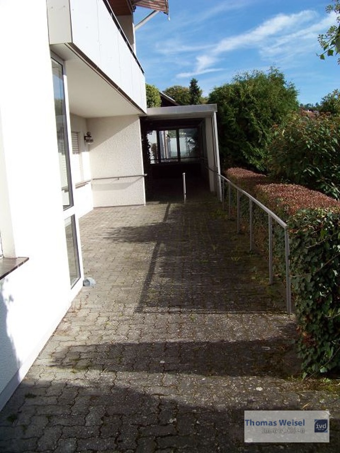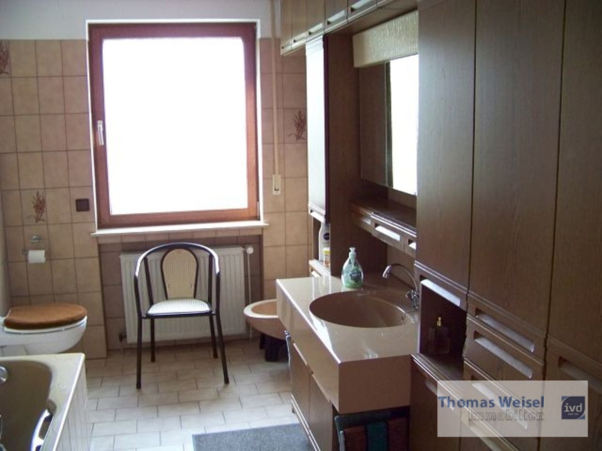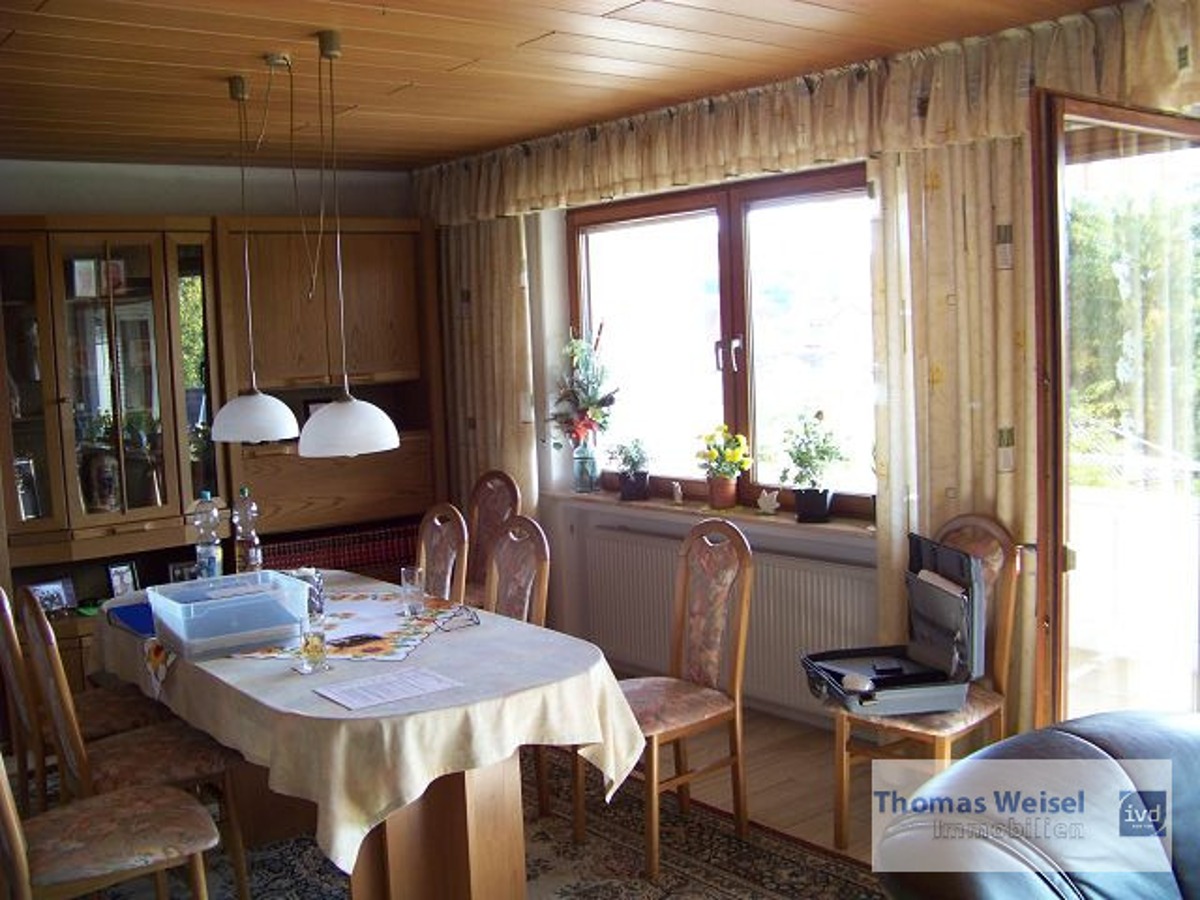 Objektbeschreibung:Angeboten wird hier ein gepflegtes grosszügig gestaltetes Einfamilienhaus mit zusätzlicher barrierefreier Einliegerwohnung. Im Erdgeschoss kommt man über einen kleinen Vorraum, in dem sich das Gäste-WC und der Treppenaufgang zum Dachgeschoss befinden, in die Diele der Hauptwohnung. Von hier geht es in die Küche (mit EBK und Speisekammer) und weiter in das grosse Wohn- / Esszimmer, in dem ein Kaminofen den Bewohnern eine wohlige Wärme bereitet hat. Vom Wohnzimmer gelangt man auf den grossen Balkon (ca. 9 m breit), der einen herrlichen Blick auf die Altstadt und in die Ferne bietet. Im Schlaftrakt gibt es 2 Gästezimmer (jeweils mit Waschbecken), das Hauptschlafzimmer mit Zugang zum Balkon und das Badezimmer mit Wanne, Dusche, WC, Bidet, Becken. Im Untergeschoss befinden sich neben der ELW einige Funktionsräume: Der Heizungskeller (Heizungstyp Viessmann Vitola Biferral von ca. 1998), daneben ein Duschbad mit WC (praktisch nach der Gartenarbeit), die Waschküche mit Ausgang zur Terrasse, ein Vorratskeller, ein Hobbyraum. Die barrierefreie ELW erreicht man stufenlos über eine eigene Haustüre. Die Wohnung besteht aus der Diele, zwei Zimmern, der Küche (mit Speisekammer) und dem Bad mit behindertengerechter Dusche und Sitzbadewanne. Eventuell könnten 1-2 Kellerräume zu dieser Wohnung dazugenommen werden. Vom UG gelangt man auch in eine grosse Garage (mit Starkstromanschluss), die bisher als Werkstatt genutzt wurde. In das Dachgeschoss wurden bereits Leitungen verlegt; ein grosser, durch einen langen Dachüberstand überdachter Balkon bietet auch einen schönen Blick auf die Altstadt. Ein herrlich angelegter Garten lädt Jung und Alt dazu ein, die Freizeit zu verbringen und sich zu entspannen. Für die Fahrzeuge stehen etliche Abstellmöglichkeiten zur Verfügung: Ein Carport für 2 PKW, 4 - 5 weitere Stellplätze sowie am unteren Ende des Grundstücks eine geräumige Garage.